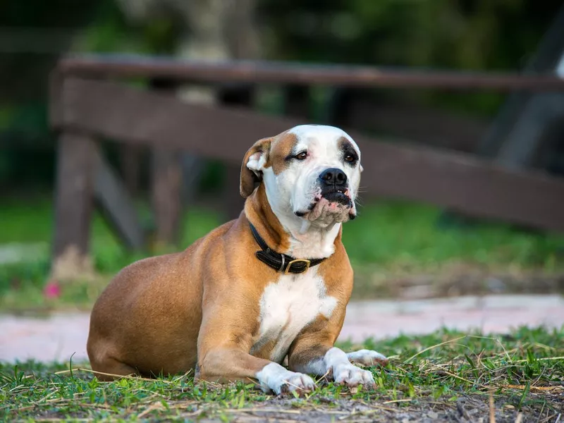 Although French bulldogs and Amerian bulldogs come from the same lineage, they have very different appearances. Frenchies are smaller — averaging 10 to 12 inches and weighing up to 30 pounds. They have large, bat-like ears that are much larger than their heads, whereas the American bulldog has a bigger face and ears that are more proportionate to their heads.