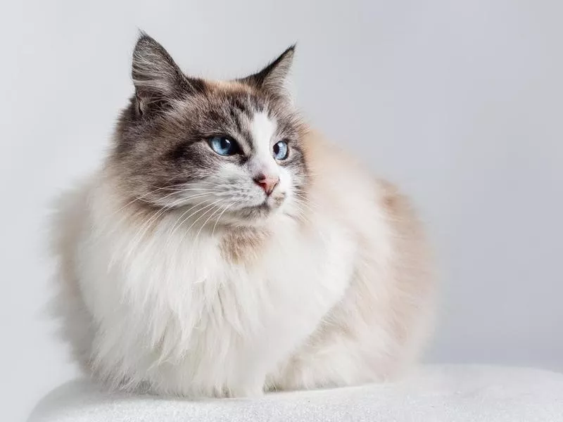 Unusual characteristic: They like to be up at least head level, so it’s not strange to see them perched on their human’s shoulder. They’re primarily an indoor cat because they can get sunburned. Their coats tend to change as often as the seasons.
